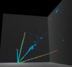 The other type, a "pixel detector", is slightly different. The detector records 3D particle trajectories as a series of a simple 2D static image just like how we record a movie with our cell phone. In this case the raw data is naturally 3D by simply stacking images along the time-axis, and requires no data reconstruction to just obtain 3D image data. The hardware challenge to make a pixel detector possible is, however, much harder than a wire detector. A pixel detector is employed in NEXT experiment, and is planned to be used for DUNE near detector. Below you can find an example particle trajectories in a pixel detector from simplified simulation.